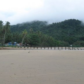By the time we arrive at the Park HQ it’s hot and humid and we’re soaked with sweat. The main park area of Tanjung Datu is set in a large, grassy field. There’s a new building that will eventually act as an education centre and lounge area. There are at least 10 rooms, all with fans and windows. We’re the only putihs in the park. A Sarawak Forestry ranger meets us and, with limited English, shows us to a room. When we ask the price, he shrugs, mumbles something about ‘off season’ and walks away. It seems that we’ll be sleeping freely tonight.